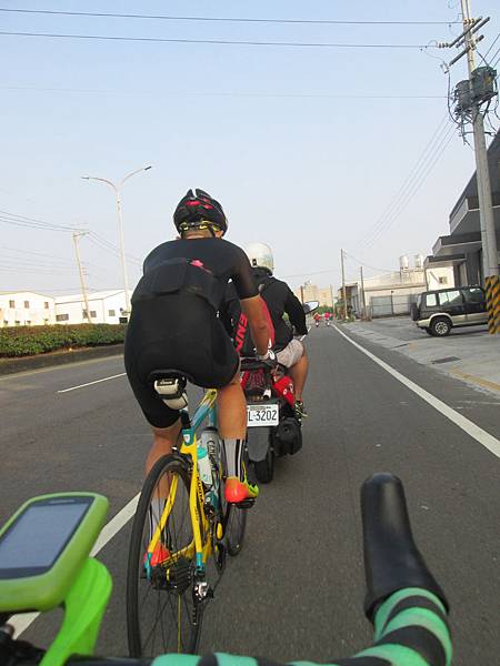 阿修說你沒問題的,應該可以七點前到右昌的MOS,然後就掛電話了。再怎麼想這段路好像都不太近。正在想要怎麼走之際,我以為六點出發的夏健團阿塔喊了我一聲,後來其它成員陸續經過,原來他們今天是六點半集合呀,這時讓我陷入了要不要直接跳團的想法,夏健團不僅有妹紙,而且今天是輕鬆騎到萬金吃早餐的行程。