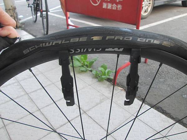 回程就逆風北上,一直覺得輪子怪怪的,以為是沒有氣,後來阿修在後方觀察的結果是胎沒有完全咬到框,有一小部份沒出來,只好到水底寮全家大嚮店去打氣。到達時才發現,他是指隔壁的汽修廠有打氣機,並不是有打氣筒。而我的法嘴胎也不能用,即使能用一般的空壓機也打不到工作胎壓,補給完後就直接回程了。