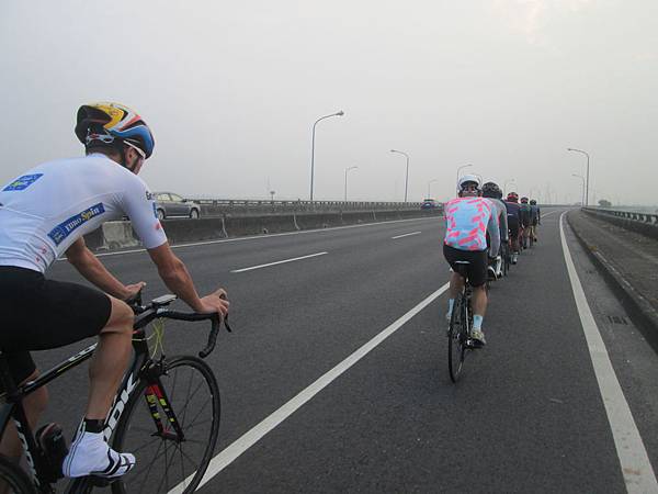 原本起來是要自己騎台南七股的,不過好像相同的時間好像可以到小海豚好像也不錯,所以就跳團參加LSD團去了,六點在衛武營前集合,還好整備的速度夠快,到達時隊伍還在。有楊醫師、小小吳、JJ(君潔)、阿福及兩位我不認識的車友。