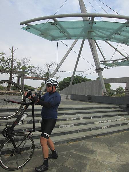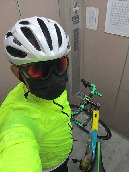 和蕭老師認識了四年了,每年都只有約騎過一次,除了去年是在八月份外,其它兩次都是在十二月份。原本想說去年八月隨便再約個一次就可以破記錄了,但是不但沒破記錄,連今年的份都差點沒約成。其實蕭老師和我都算是常騎車的人,只要某次團練和他一起騎就可以破記錄了。但是他們的團都很不友善,讓我都不太能參加。今天的約騎再沒去,就來不及了,所以五點起床,五點半出門,天氣正冷呼吸起來其實很不舒服,所以就來個口罩擋一下吧。