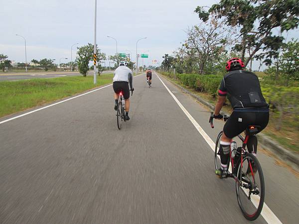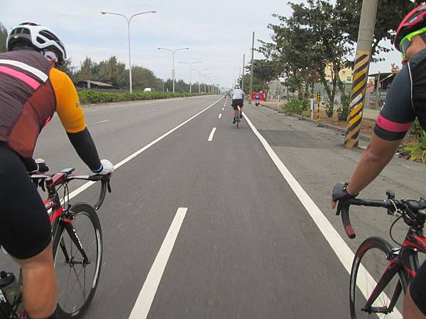 今天的北風也不弱,所以前進的速度並不快,而且因為博禾騎的是百勁TIME的試乘車,所以他並沒有很常躲在隊伍的後方,而是保持個一個GAP。去程花了73分才到,而且使用的功率和前幾天獨騎差不多,所以今天的北風是更強勁的。