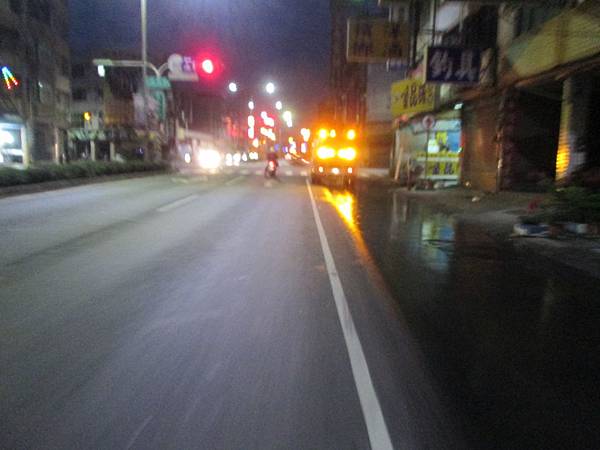 甫出發就遇到灑水車當前導車...,雖然我今天穿的是白車衣,但這威力也太強大了吧。灑水也就算了,當前導是怎麼回事?好在這狀況並不持久,灑水車被紅燈擋住停下來後就超越了。
