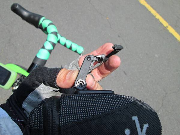 練習量很不夠的感覺,所以早上忙完春捲皮的製做後,回到家又換裝出門。依例柴山溝物十。結果第九趟下坡時,看到有東西從車上滾落,回頭去撿才發現車後袋噴了。再仔細一看原來是卡榫斷裂了...,我才用不到一個月咧。