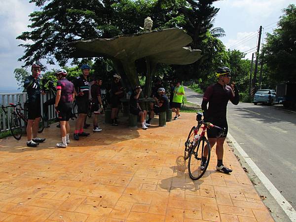 不過因為時間還早,所以就上中寮山吧。一上山承寰和總裁就衝出去,我想說試試能不能追擊,就抽車跟上去,90秒後力竭...。緩和約60秒後感覺狀況還可以,就開始以大約250W持續輸出。好久沒這麼爬坡了,中間遇上RAPHA團的活動,車友極多,中間還遇上ERIC。以約20分的時間到坡頂,約25分到香菇亭,好像好久沒爬這麼快了...。去昊天宮裝水完後到蓮花亭,我把今年份中寮山能看到的咩的數量都在今天看完了...。也太多人了吧。