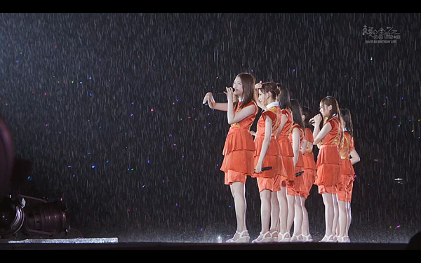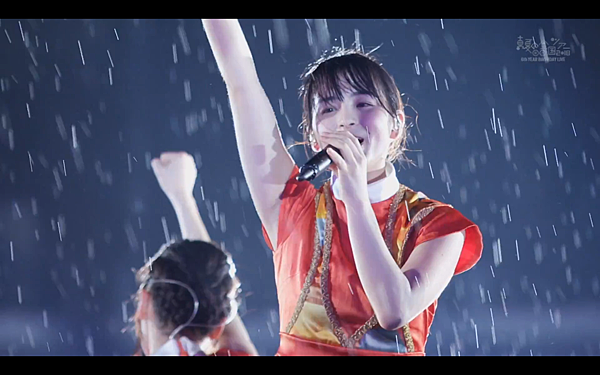 還在想下雨天,她們還是維持著一樣的舞蹈動作,會不會很危險,這樣還能維持著一貫的水準。真夏(まなつ)就華麗的噴掉了...,不過看起來無大礙。