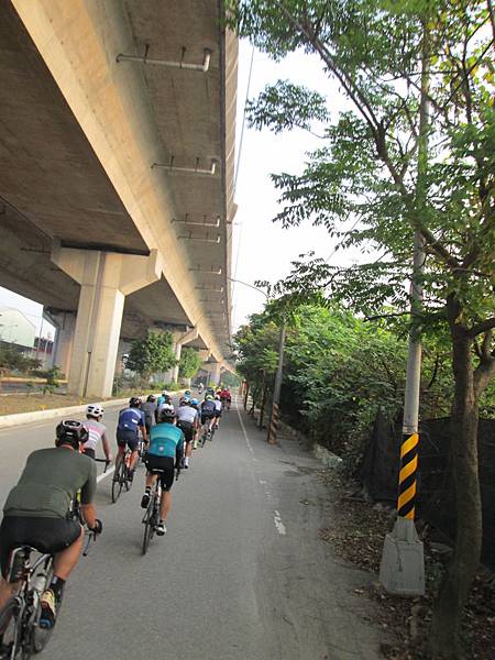 力氣都花在前面趕集合了,領騎有健銘和神奇大人,我就樂得在隊伍後方晃來晃去,途中還遇上鐵人們的自行車團練,不過看起來他們都還沒開始啟動,速度都不快。