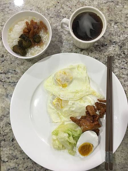 原本0400後才要起床的我,卻在0355自己醒過來了...。嘴吧說著要睡晚一點的我,身體倒是很誠實的反應著對於比賽的緊張感。醒來也不代表著起床,而在床上多掙扎了十分鐘才起來。飯店0430才開始提供早餐,所以醒來後就開始把昨天買的全家熱壓吐司*2吃完,時間到了才又下樓吃早餐。其實昨晚的碳水化合物類的也吃了比平時多,這是肝醣超補法XD。平時也沒在喝咖啡的我,今早硬是喝了兩杯才出門。