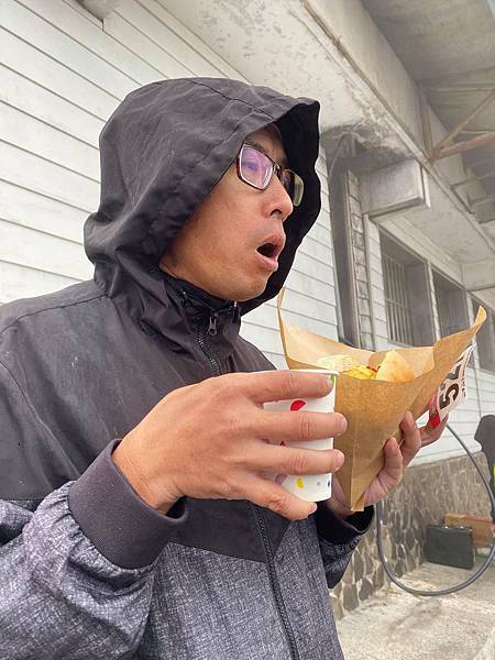 穿著完禦寒外套拍完照就下滑到昆陽去了。接著去大會提供午餐的快餐車拿完漢堡及咖啡就變成這樣子了。