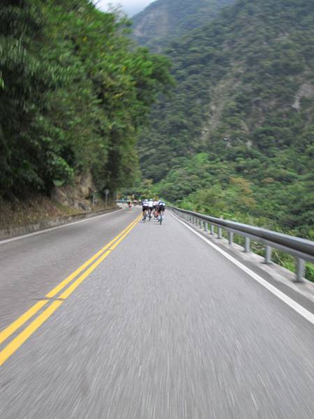 放行點到天祥是段緩上的地形,看起來上上下下,但是約二十公里爬昇四百多公尺,除了稍陡的地方會站起來抽外,其它就大約用二百瓦前進著。