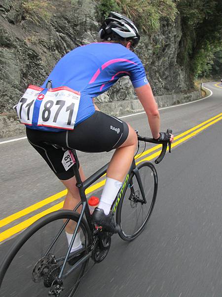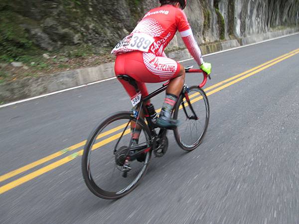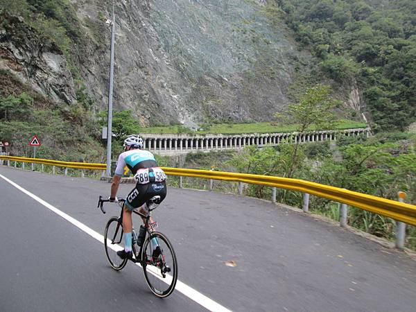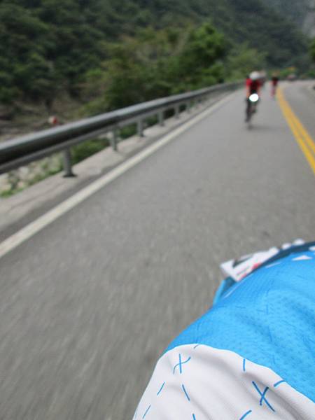 明明在起點時大會說未放行段速度會壓在35~38Kph,但是在進太魯閣大橋前,除了在新城有個阿桑硬是在大集團橫切到對面加油站加油外,我很少看到表速有低於四十過的。我還身處在集團前三分之一的位置,很難想像在後段的人那種起步再加速會花多少氣力。