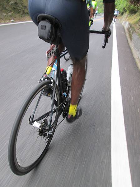 一過大禹嶺就來個震撼教育,不囉嗦抽車上,才一起身就坐下。我想要的是抽車上,而不是抽筋上呀!只能慢慢龜,速度從原本的兩位數,變成了9、8、7,從保9一路降到保5保4保3...。這時我很認真的在想,要不要下車用跑的向Froome致敬一下,可能速度還比騎車快一點了。而抽車都起不來時,就只能之字騎法了,就蛇形啦!除了下車外,蛇形逆向全都用上了,只要能前進就好。