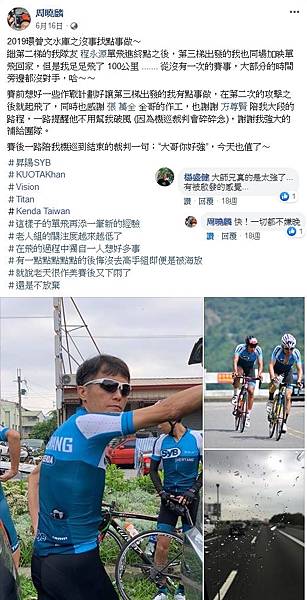 最後要感謝昇陽SYB車隊的所有幹部的各項協助,我知道後勤很煩雜且辛苦的,有了車隊強大的後勤能量,讓我只要把訓練處理好就可以了,雖然訓練方面我也沒訓練好就是了XD。