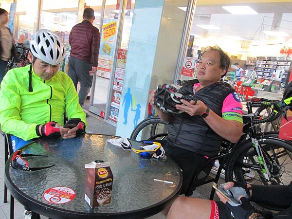 0912就來到了海豚灣門市。其實水也沒什麼喝到,而且早餐也吃過了,所以就有點無所適事的躲在屋內的牆角旁,因為那邊有九十度,比較溫暖...。早上出門沒帶到風衣,騎車時不冷,不過停下來休息吹到風會冷,只好一直躲在小七裡面。