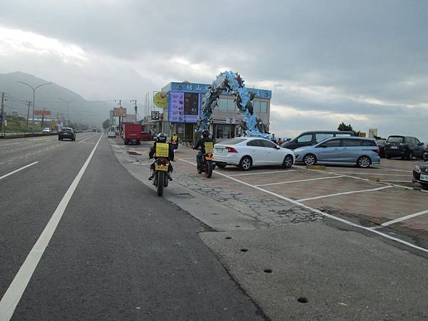 約八點半到達小海豚(海豚灣門市),剛才追過我停下來的四位重機騎士,背後都揹著塊板上,上頭寫著他們正在24耐環島中。感覺騎機車比自行車還累,累並不是身體上的累,而是精神注意力要很集中,而且很容易坐不住。我騎自行車去墾丁還OK,但是要騎機車去就要沿途一直休息了。