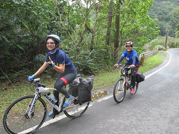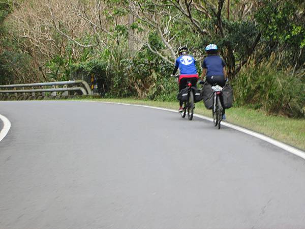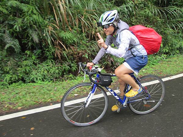 爬著爬著又遇到另一組環島的隊伍,他們今天行程會到金崙。這位叫51的妹子是這隊中最強大的,揹著大包包,跑在最前面。還說是因為騎公路車才比較快。前一天可以從台南殺上壽卡下旭海和朋友會合,現在又從旭海殺回壽卡到金崙,若這不算強大的話,我還真的不知道強大要如何定義了。