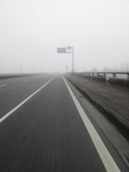 能見度極差,是混有霧氣的霾,萬大橋上的路面都快變溼的了。