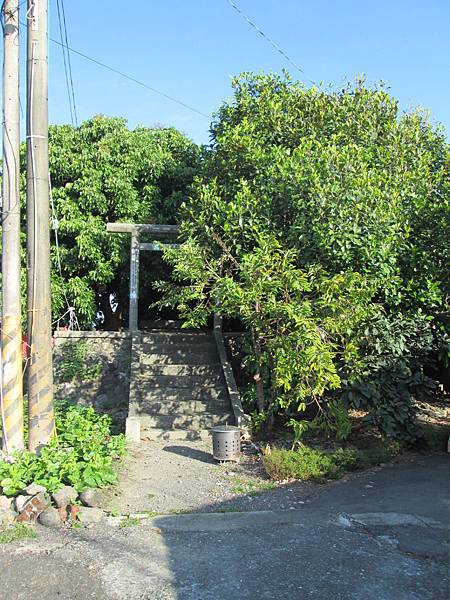 繼續往東港前進,看到佳冬小七的對面有條小路,這裡有座神社。這裡曾經是佳冬神社,只是現在只剩兩座鳥居和一排燈座來証明他曾經存在過。