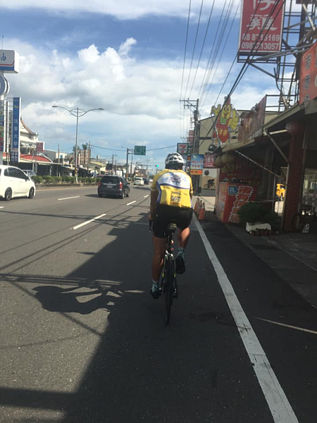 這個背影想都不用想就是陳大隻(陳小毅),在南部有這麼大隻的沒有第二個人,先跟在後方拍照打卡,他原本要停下來補給的,但聽到我要繼續往南,就決定兩人一起騎乘了。然後就是兩人打屁互虧唬爛的時間,原本想騎到小海豚的,但是騎到品味軒就有點受不了了,就在品味軒休了半個小時左右,就踏上回程。