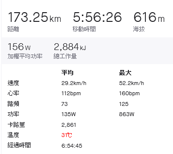 能在實時七小時內回到家其實還蠻意外的,原以為會花更久的時間的,不能說平時的練習的很好,不過最少也還可以保持在一定的水準。不過在雨區的強加速,後來導至右大腿股內側肌有點拉傷那又是後話了,還是有點太勉強了...。多騎騎別太高估自己,別把自己弄受傷了。20210906