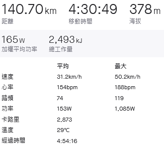 回程在水底寮陸橋過後的小十字路口檳榔攤補水後繼續出發,1542通過水底寮(1405加48公里約96分鐘,和預估的只有一分鐘的誤差),1627到188,到達188就差不多再一個小時可以到家了,日落時間為1715看來今天可以成功的在還有太陽餘光的狀況下回家了。其實怕狀況不佳,還是有帶著後燈做夜騎的準備,還好狀況還不壞。